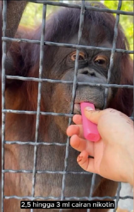 Menurut laporan media lokal, Dana menunjukkan perubahan perilaku yang mengkhawatirkan setelah menghirup asap vape beberapa kali. Bahkan, muncul dugaan bahwa orangutan tersebut sempat menelan salah satu kartrid vape yang mengandung 2,5 hingga 3 ml cairan nikotin, yang dapat menimbulkan dampak serius bagi kesehatannya.